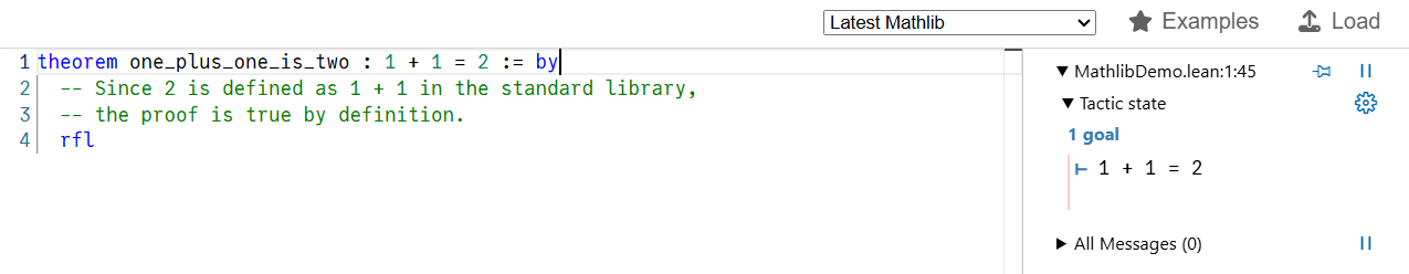Try it out! Just copy and paste the code below into Lean 4 Web.